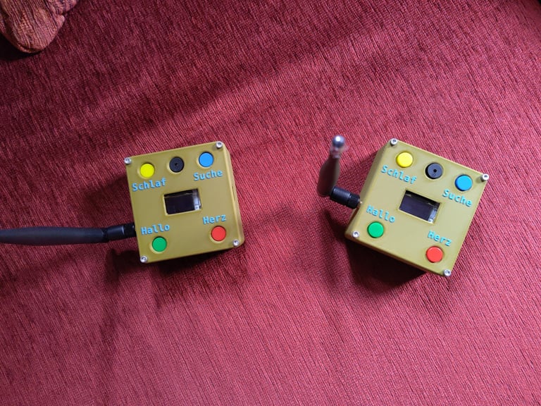 Weil ich meine Programmierfähigkeiten nicht überschätzen wollte, sollte mein Bastelprojekt zunächst nur Textnachrichten übersenden, ein "Hallo von ..." und eine Herzgrafik als kleine "Hey, ich denke an dich"-Mitteilungen. Darüber hinaus ist der reine Textnachrichtentransfer auch über größere Entfernungen möglich als Sprache es wäre.