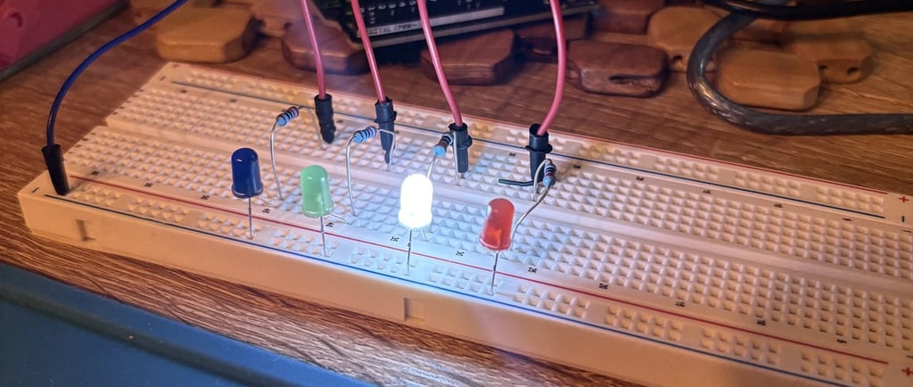 Mit LEDs, Widerständen und einem Breadboard bauen wir erste einfache Schaltungen: